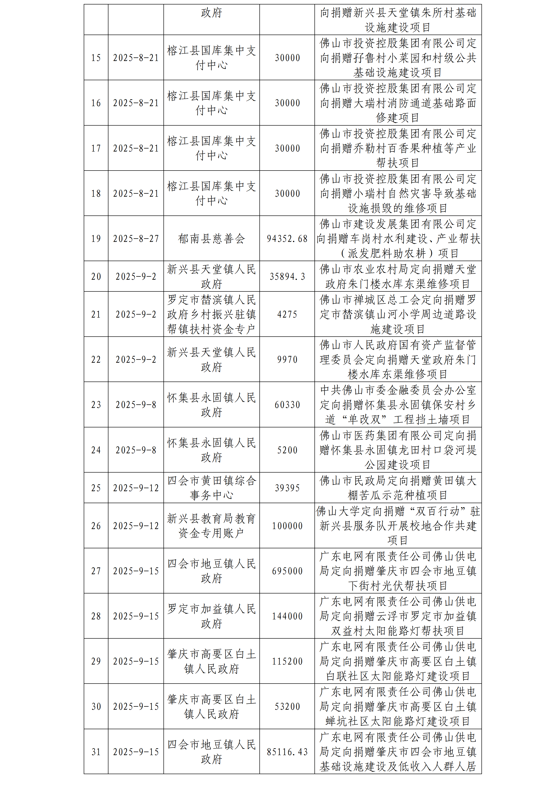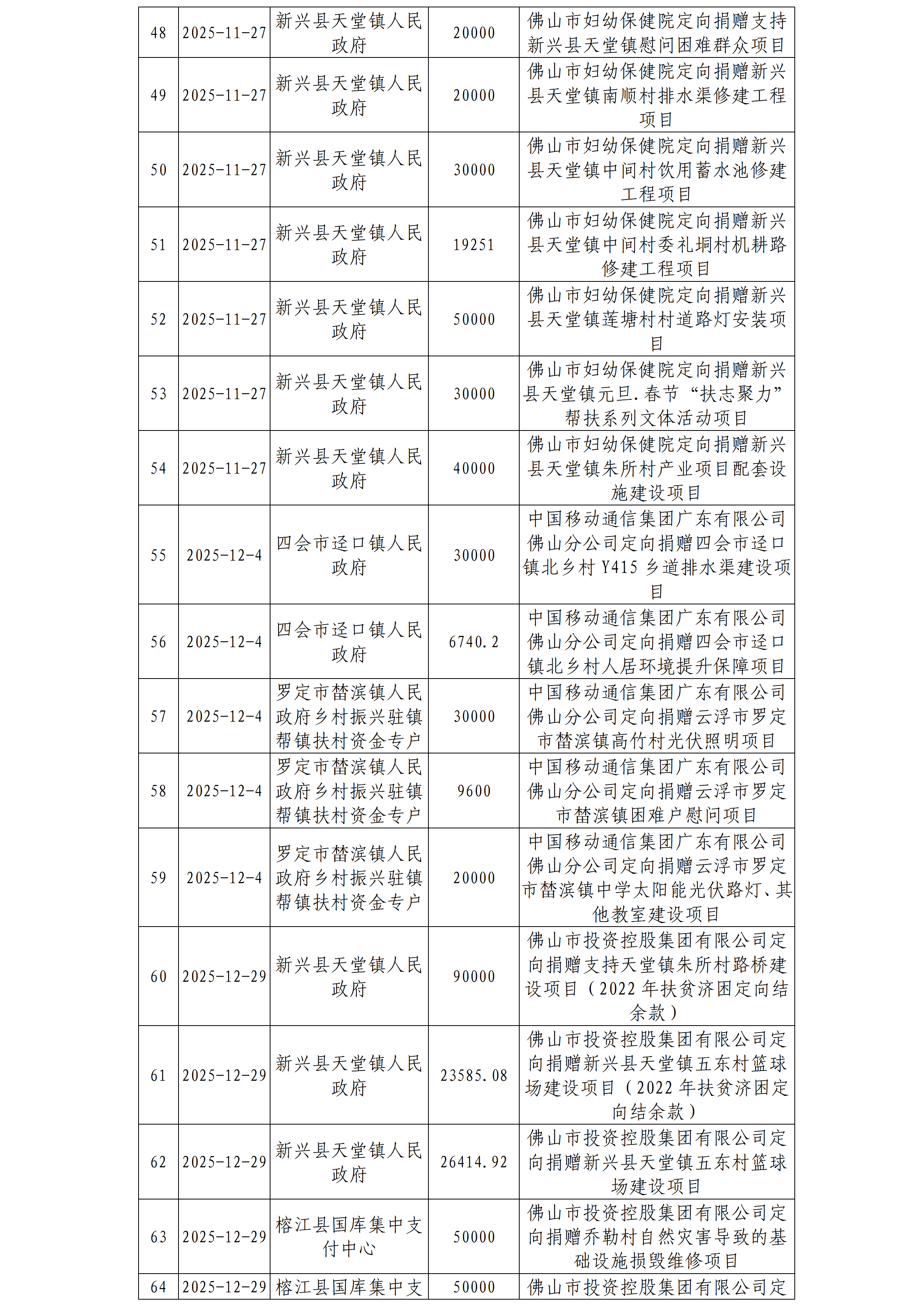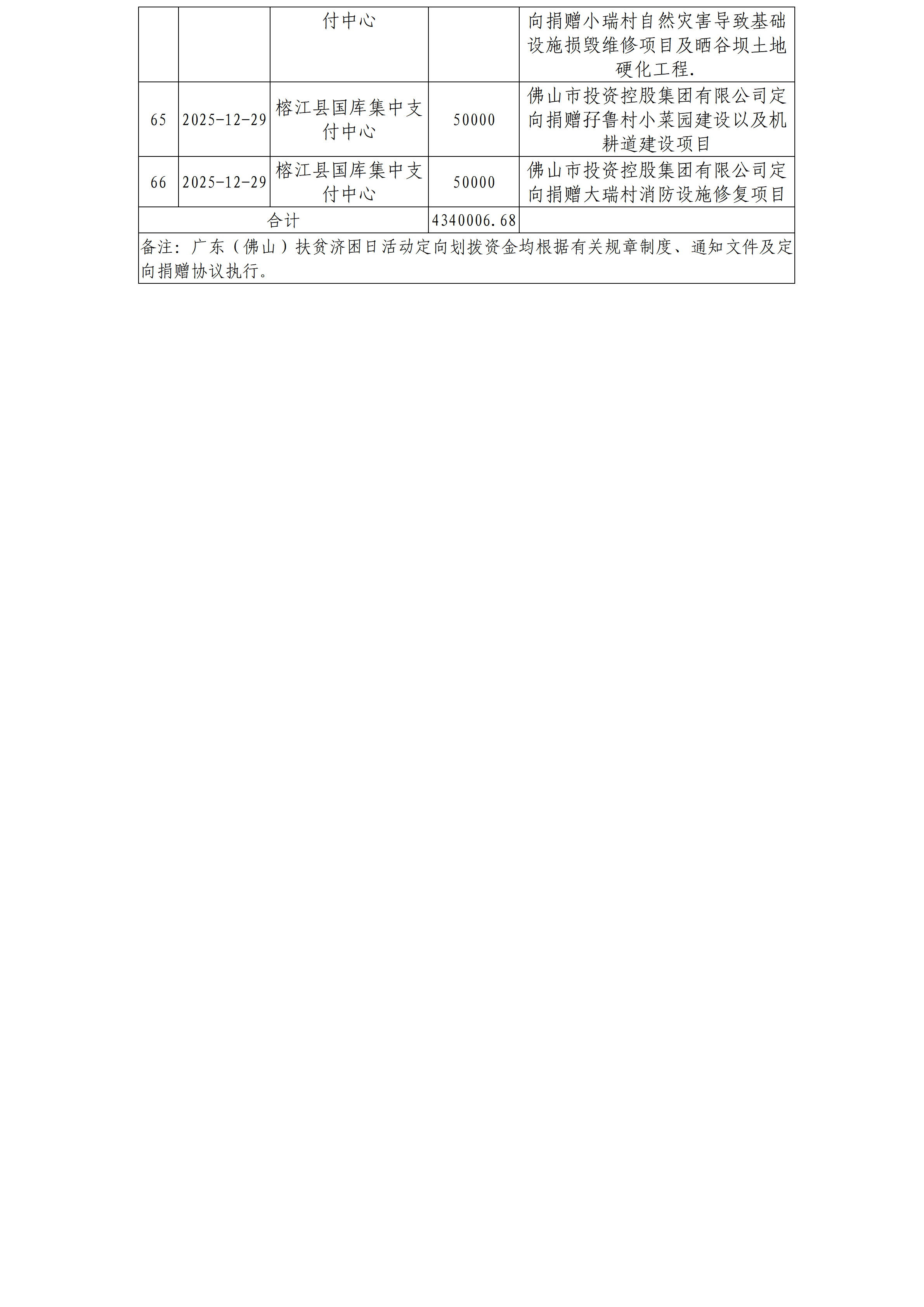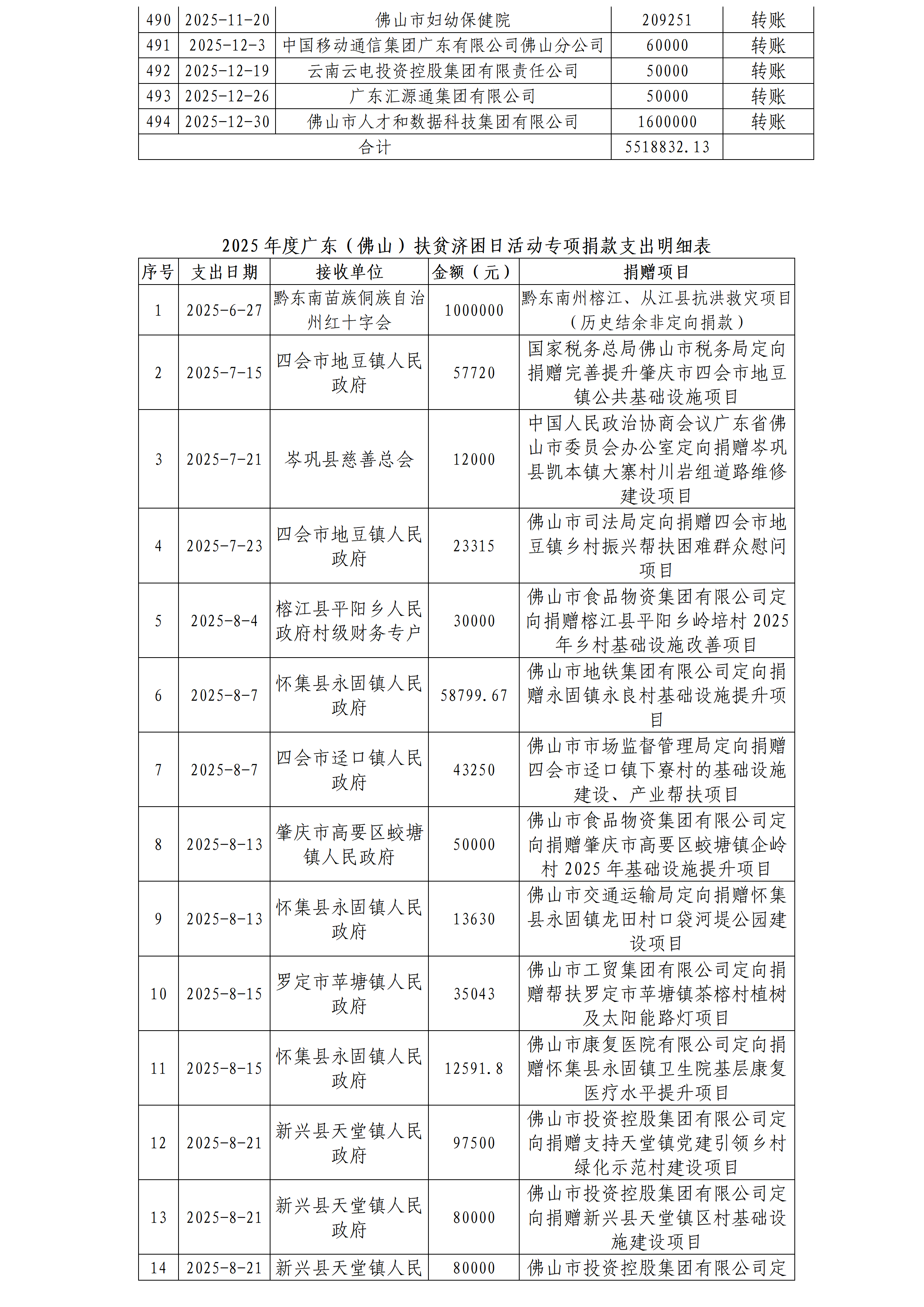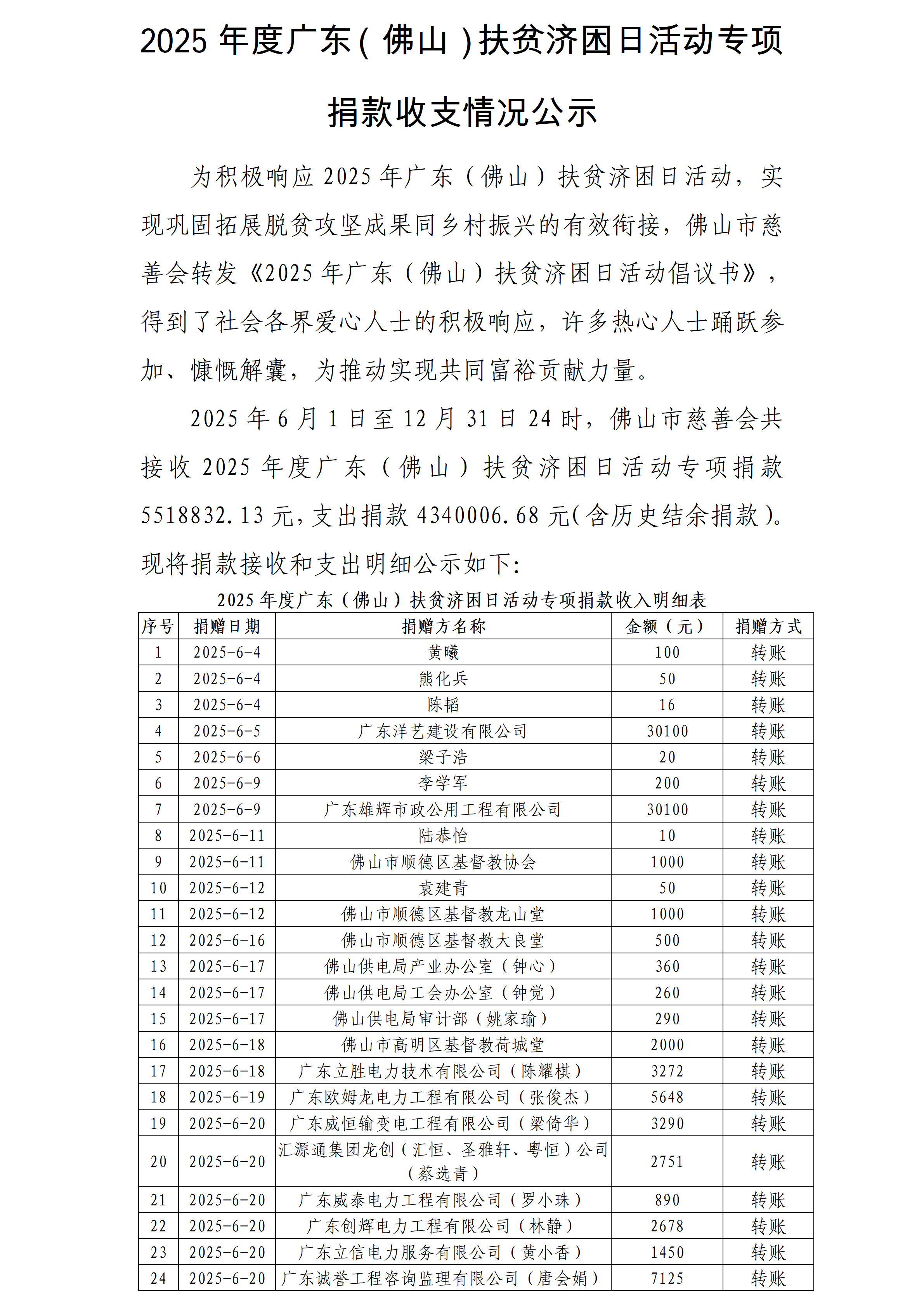 >2025年度广东(佛山)扶贫济困日活动专项捐款收支情况公示(2025年6月1日至2025年12月31日)